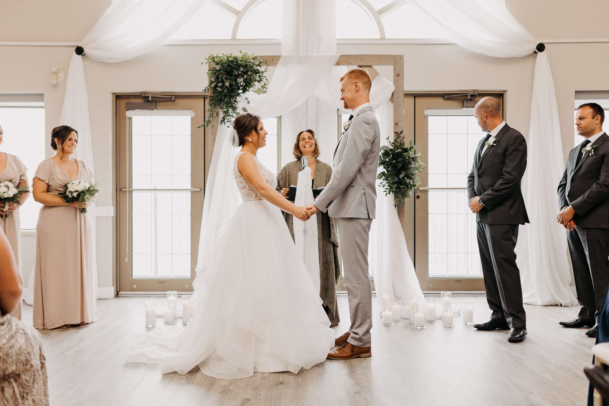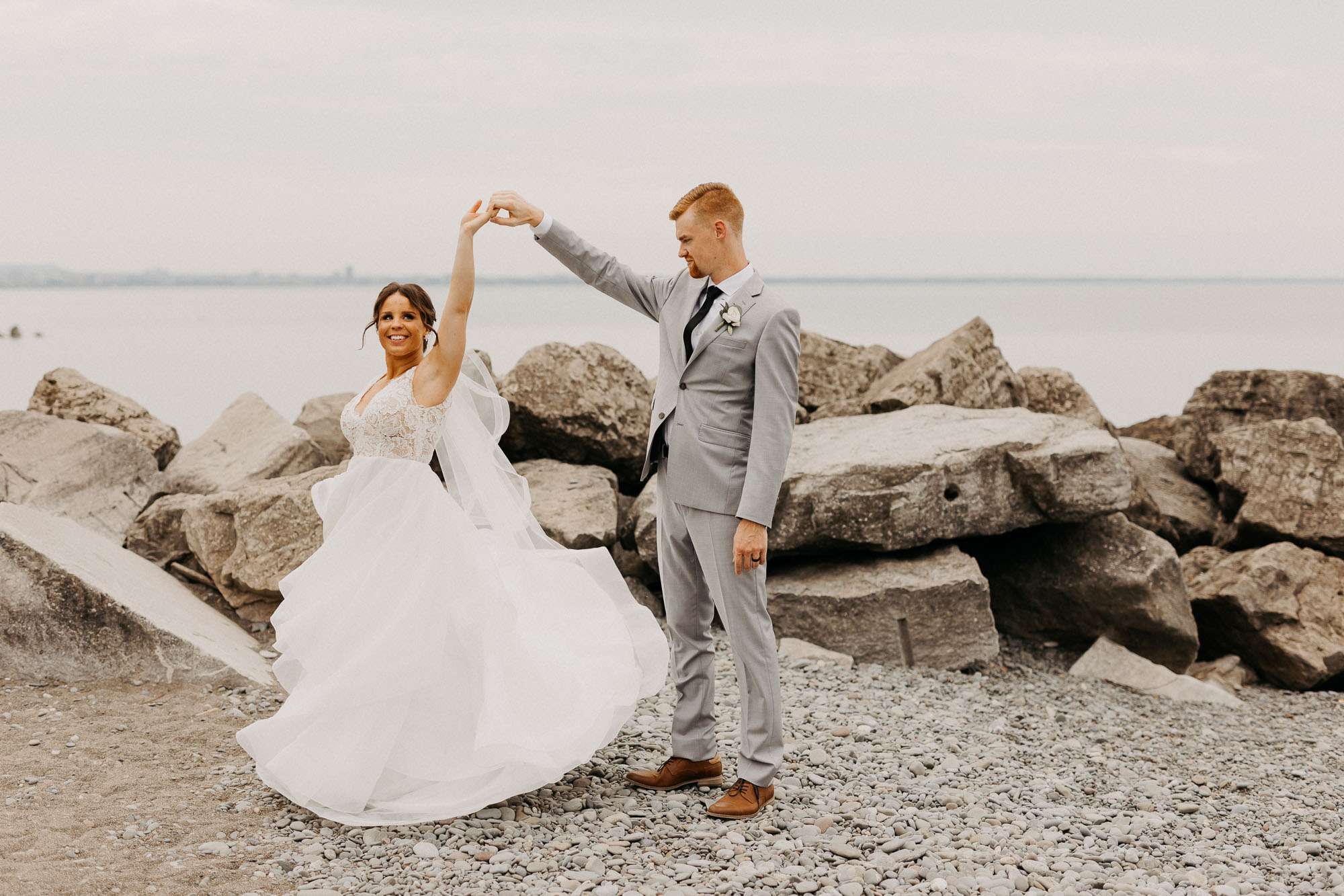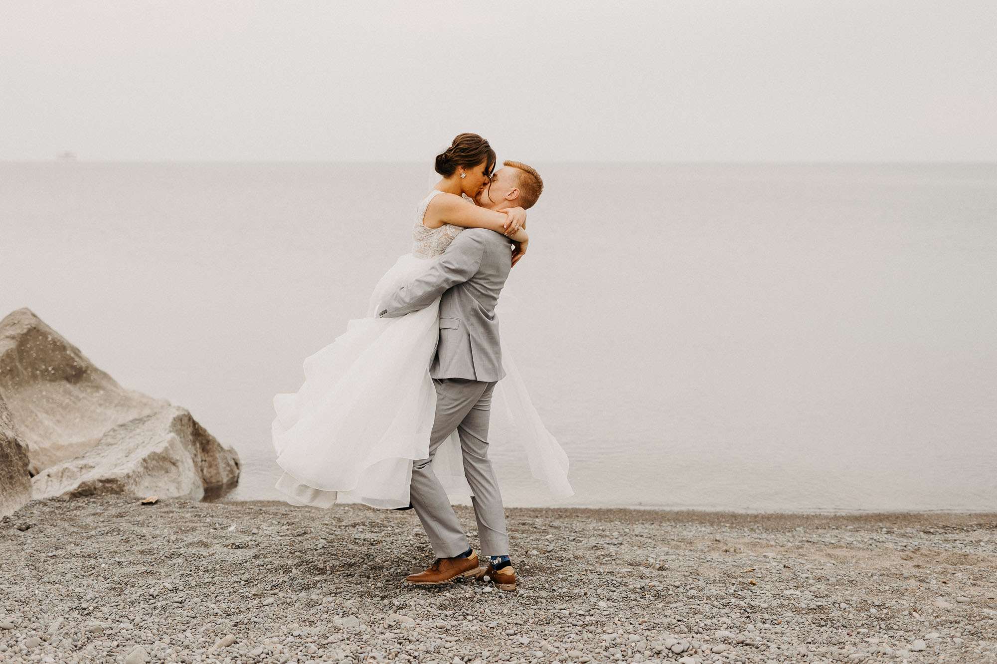 Shelise & Brandon’s day was a wonderful celebration of their love for each other. Despite having to reschedule their wedding countless times, and finally being able to go ahead on a Wednesday, they were able to make the most of their day. After getting ready they shared a party bus together to their first look at The Annex. Brandon had to wear a blindfold for the whole drive! Luckily he didn’t need to be blindfolded for the drive to The Lakeview for their ceremony and reception. After the ceremony we headed outside to the beach to finish up some photos of the both of them together, before heading inside for the reception. Shelise & Brandon’s day was so much fun and we’re so happy that we got to document these moment for them!
